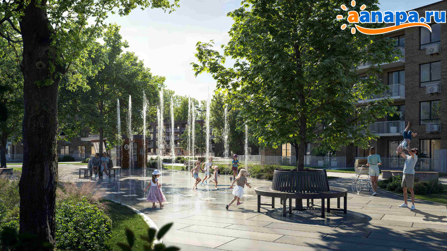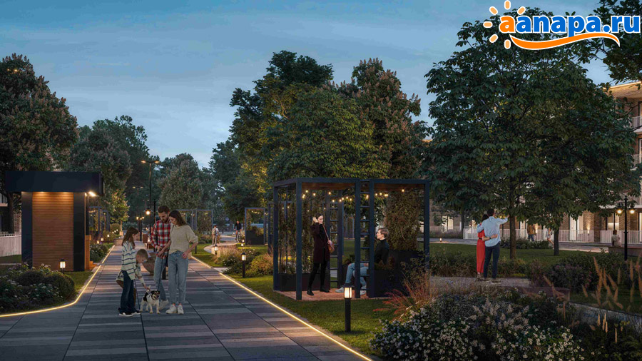 Современные детские и многофункциональные спортивные площадки, ландшафтный дизайн и малые архитектурные формы создают оригинальное благоустроенное пространство для детей и взрослых. Общая площадь озеленения составит 5 га, в которые войдут 3 сквера и прогулочные аллеи.
